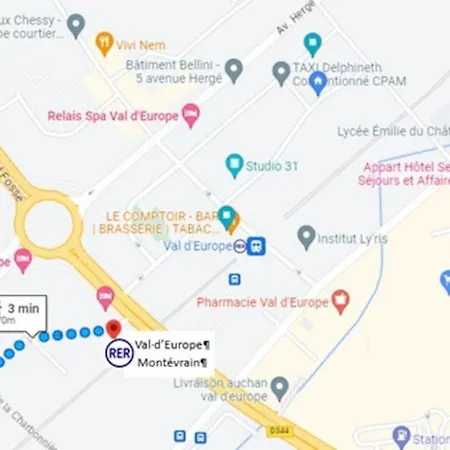 Поле для гольфу <<Бюссі-Германт>> знаходиться на відстані близько 10 хвилин їзди, а аеропорт Міжнародний імені Шарля де Голля - за 40 км від апартаментів. Бутик-містечко Ла Валле Віладж також знаходиться відносно близько до помешкання.